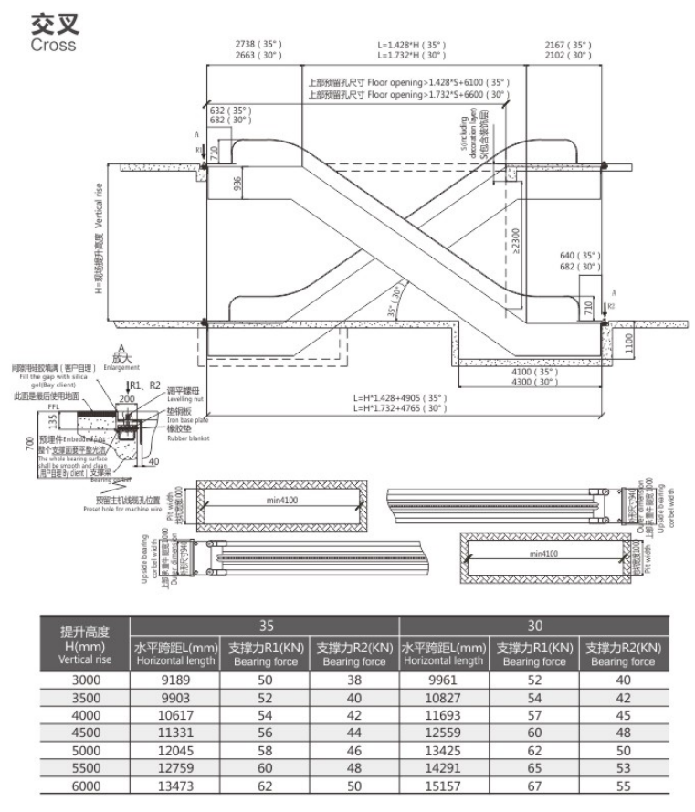 下图为中海三菱电梯交叉布置安装的购物车电梯土建示意图,如有疑问可查看www.zhsldt.com更多内容或直接致电我们的技术顾问:13616720921