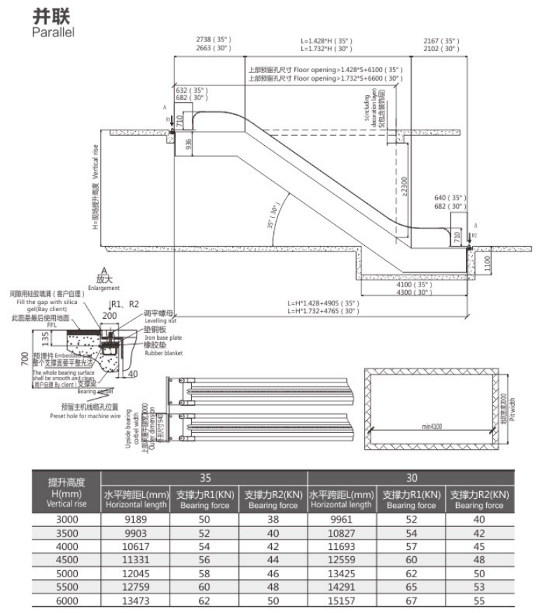 下图为中海三菱电梯并联布置安装的购物车电梯土建示意图,如有疑问可查看www.zhsldt.com更多内容或直接致电我们的技术顾问:13616720921