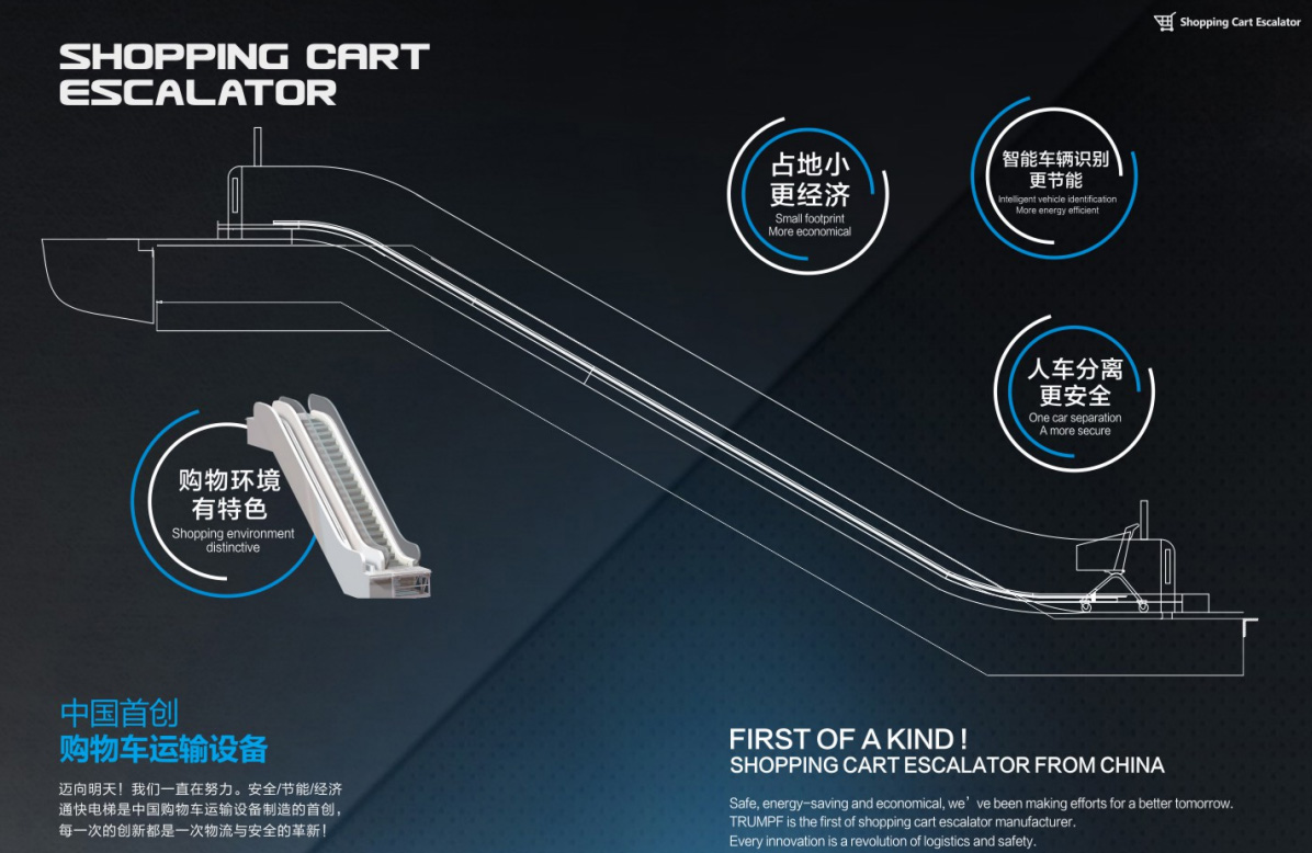 全球商超订制产品-中海三菱购物车电梯,购物车运输设备